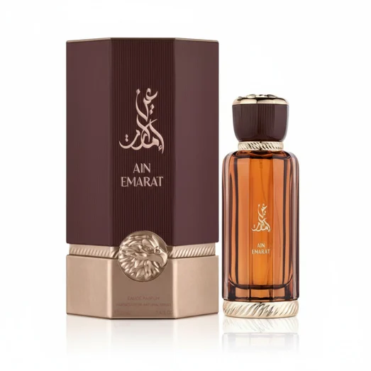 Ain Emarat features top notes of Saffron and Citrus, heart notes of Amber, Patchouli, and Floral Accords, base notes of Musk, Oud, and Sandalwood. It belongs to the Oriental • Woody • Amber fragrance family.