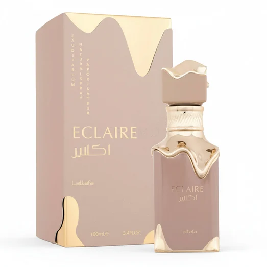 Eclaire by Lattafa is an Eau de Parfum for women in the gourmand family, built around a caramel‑vanilla‑milk opening that creates a sweet, edible aura, leading to an almond‑tonka‑rose heart with a soft floral edge, and rests on a musk‑amber‑sandalwood base that adds depth and warmth.