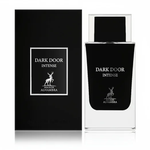 Dark Door Intense by Maison Alhambra is an Eau de Parfum for Unisex wear, classified in the Woody • Amber • Spicy family, featuring bergamot, black pepper, amberwood, lavender, patchouli, cedarwood, tonka bean and musk.