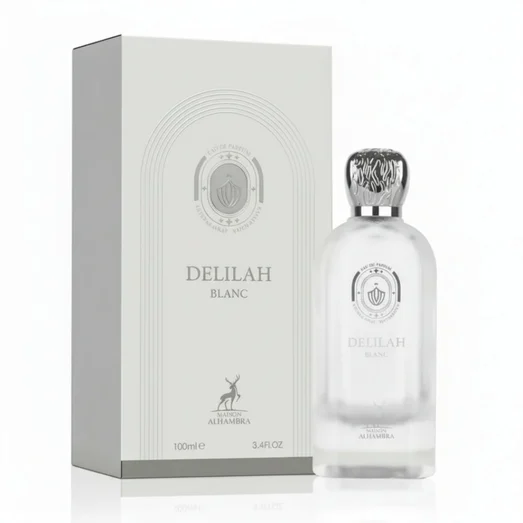 Delilah Blanc by Maison Alhambra is an Eau de Parfum for women in the Floral • Fresh • Musky family, built around a pear‑ly lychee‑bergamot opening that leads to a peony‑jasmine‑lily of the valley heart and rests on a musk‑vanilla‑cashmeran base.