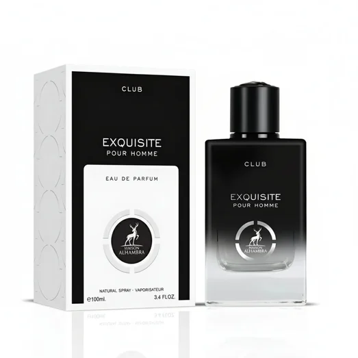 Exquisite Club by Maison Alhambra is an Eau de Parfum for men in the oriental family, built around a citrus opening that leads to a wood‑spice heart and amber‑musk depth, offering a structured aromatic experience with a refined balance of bright and warm elements.