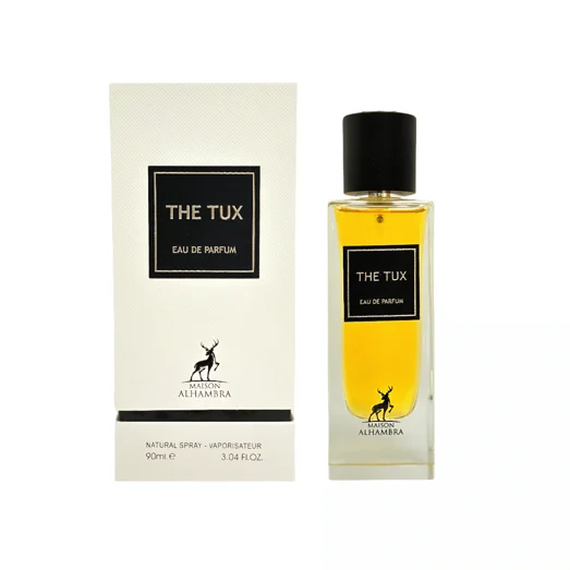 The Tux is an Eau de Parfum (EDP) by Maison Alhambra, available in a 90ml bottle. As an EDP, it has a higher oil concentration (15-20%) compared to EDT, resulting in stronger projection and longer wear.